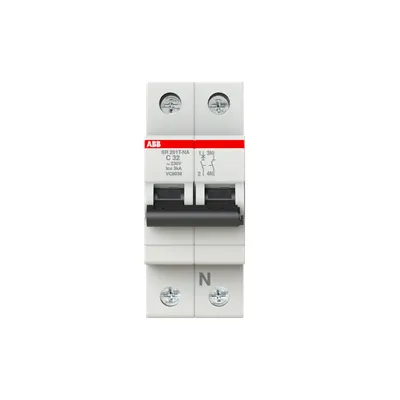 2CDS231170R0324 ABB: SR201T-C32NA is part of SR200T range. SR200T has two different tripping mechanisms, the delayed thermal tripping mechanism for overload protection and the electromechanic tripping mechanism for short circuit protection. They are available in C-characteristic, different pole configurations and rated currents up to 63A. All MCBs of the product range SR200T achive a breaking capacity of 3kA and comply with SANS 556-1 and SNS IEC 60947-2.