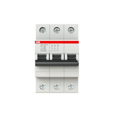 2CDS233070R0164 ABB: SR203T-C16 is part of SR200T range. SR200T has two different tripping mechanisms, the delayed thermal tripping mechanism for overload protection and the electromechanic tripping mechanism for short circuit protection. They are available in C-characteristic, different pole configurations and rated currents up to 63A. All MCBs of the product range SR200T achive a breaking capacity of 3kA and comply with SANS 556-1 and SNS IEC 60947-2.