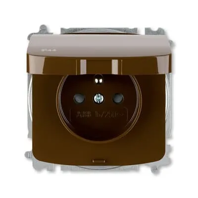 2CHA192997A4528 ABB: Desing Tango® , brown color. Earth-pin socket with lid and shutters with protection IP44 for standard frames up 3gang for vertical a horizontal installation.