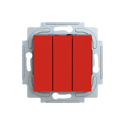 The compact, three-gang design reduces panel footprint and wiring complexity, lowering material and installation time. The durable thermoplastic body resists wear and simplifies cleaning, reducing maintenance costs. Clear color-coding (RAL 3024 red) and a reliable non-illuminated rocker help operators quickly identify status, improving uptime and overall ROI in high-volume production environments.