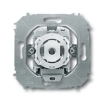 This switch insert is designed for flush-mounted installation with either claw or screw fasteners, enabling secure mounting in impulse cover plates and standard control panels. The device uses screwless terminals to simplify wiring, reducing setup time and torque-related issues during installation.