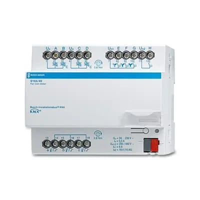2CKA006151A0252 ABB: Three contacts for switching a three-stage fan. Output H can be used to activate and electric heating system. Three inputs are available, e.g. for PT1000 message contacts, e.g. window and condensate water monitor. The scanning voltage is provided by the device. The control value is made available via the KNX bus.