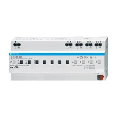 2CKA006197A0035 ABB: Multichannel universal dimming actuator for controlling incandescent lamps, 230 V incandescent halogen lamps, low-voltage halogen lamps with conventional or electronic transformers, and dimmable energy-saving halogen lamps. Optimized for dimming of Philips retrofit LEDs (LEDi). Increasing the max. load via channel bridging possible. The outputs can be switched parallel in any combination. Outputs automatically recognise the connected load. In addition, the operating mode can be selected manually. Status indication of the channels via LED. Direct manual operation with / without KNX voltage connected or in an unprogrammed status possible. Incl. 10 logic channels (light scene actuator, sequence actuator, logic gates, etc.).