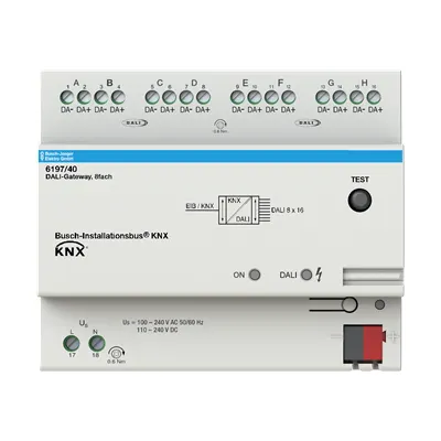 2CKA006198A0108 ABB: For the actuation of DALI-gears, e.g. electronic gears, via ABB i-bus® KNX. Up 128 DALI devices can be connected with a maximum of 16 per channel. Addressing or start-up of the DALI devices is not necessary.