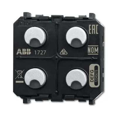 2CKA006200A0119 ABB: For transmitting switching, push-button, dimming and blind commands to an ABB-free@home® actuator. Communication with the free@home system is carried out wireless. For contacting 2gang rocker 6230-2x-xxx, 6231-2x-xxx, 6232-2x-xxx, 6233-2x-xxx and 6234-2x-xxx. With fixing claws.