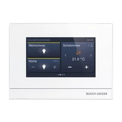 2CKA006220A0007 ABB: For the central control of up to 16 configurable ABB-free@home® functions. For the display of configurable system messages. A configurable primary function can be triggered with a multi-touch gesture. Capacitive touch screen with closed glass surface. With integrated room temperature controller and temperature sensor. In connection with temperature sensor 6226/T the integrated room temperature controller can be fitted with a remote sensor. Suitable as room temperature controller extension unit (up to 8). Requires additional power supply 24 VDC e.g. 6358-101. Power consumption: 150 mA Display size: 10.9 cm (4.3'') Display resolution: 480 x 854 Mounting height: 8 mm
