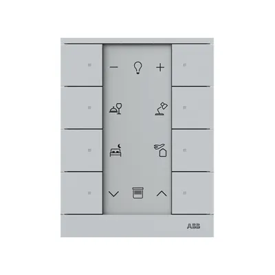 2CKA006220A0856 ABB: For transmitting switching, push-button, dimming and blind commands to an ABB-free@home® actuator. With integrated bus coupler. With labelling field. With integrated room temperature controller for direct control of heating actuators Setpoint temperature can be adjusted via App or Panels. Number of bus subscribers: 1