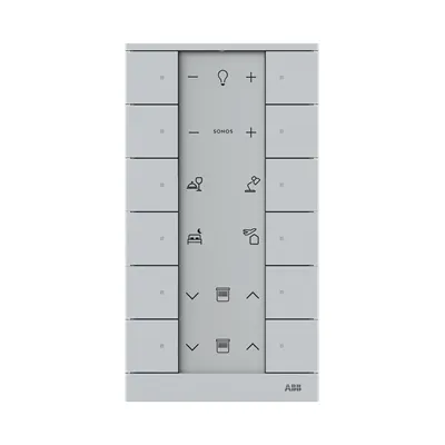 2CKA006220A0857 ABB: For transmitting switching, push-button, dimming and blind commands to an ABB-free@home® actuator. With integrated bus coupler. With labelling field. With integrated room temperature controller for direct control of heating actuators Setpoint temperature can be adjusted via App or Panels. Number of bus subscribers: 1