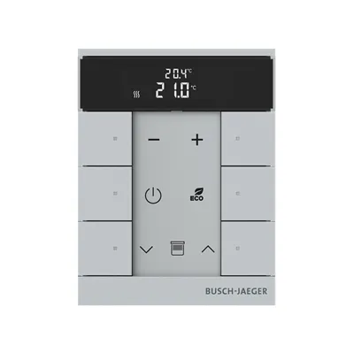 2CKA006220A0882 ABB: Control element with room temperature controller function. For controlling commercially available actuating drives in combination with free@home Heating-/Fan-Coil Actuators. With display of set-value and current temperature. For transmitting switching, push-button, dimming and blind commands to an ABB-free@home® actuator. With integrated bus coupler. With labelling field. Number of bus subscribers: 1