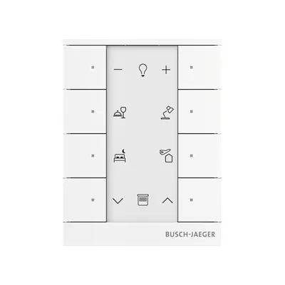 2CKA006220A0886 ABB: For transmitting switching, push-button, dimming and blind commands to an ABB-free@home® actuator. With integrated bus coupler. With labelling field. With integrated room temperature controller for direct control of heating actuators Setpoint temperature can be adjusted via App or Panels. Number of bus subscribers: 1