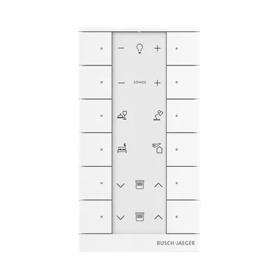 2CKA006220A0887 ABB: For transmitting switching, push-button, dimming and blind commands to an ABB-free@home® actuator. With integrated bus coupler. With labelling field. With integrated room temperature controller for direct control of heating actuators Setpoint temperature can be adjusted via App or Panels. Number of bus subscribers: 1
