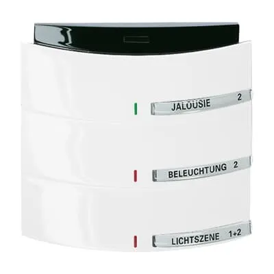 2CKA006320A0014 ABB: With integrated KNX bus coupler. With labelling field. Rocker switch left/right (switching/dimming/blind/value sender/light scenes/fan function).