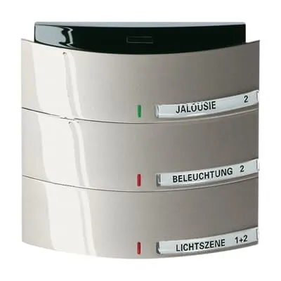 2CKA006320A0015 ABB: With integrated KNX bus coupler. With labelling field. Rocker switch left/right (switching/dimming/blind/value sender/light scenes/fan function).