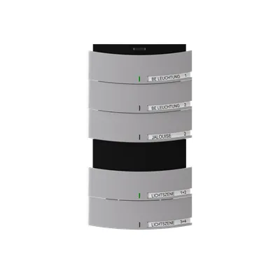 2CKA006320A0037 ABB: With integrated KNX bus coupler. With labelling field. Rocker switch left/right (switching/dimming/blind/value sender/light scenes/fan function).