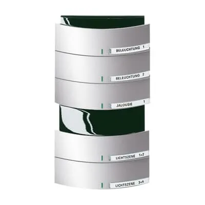 2CKA006320A0038 ABB: With integrated KNX bus coupler. With labelling field. Rocker switch left/right (switching/dimming/blind/value sender/light scenes/fan function).