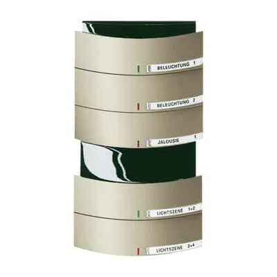 2CKA006320A0040 ABB: With integrated KNX bus coupler. With labelling field. Rocker switch left/right (switching/dimming/blind/value sender/light scenes/fan function).