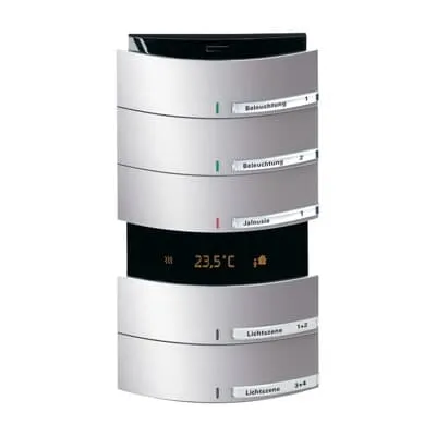 2CKA006320A0067 ABB: With integrated KNX bus coupler. With labelling field. Rocker switch left/right (switching/dimming/blind/value sender/light scenes/fan function). Master/slave configuration. With base-load operation. Control element with room thermostat function for triggering the heating, ventilation and fan-coil actuators. The controller is a constant room temperature controller for ventilator convectors (fan coils) in 2-pipe and 4-pipe systems and conventional heating or cooling systems. The fan stage can be switched manually or in automatic mode. Class of temperature controller 1 Contribution to space heating energy efficiency 1,0%.