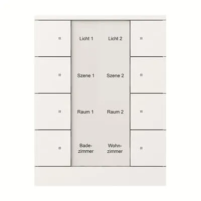2CKA006330A0013 ABB: With integrated KNX bus coupler. With labelling field. Support of KNX functions through innovative colour concept (yellow=lighting, blue=blind, orange=RTC, magenta=scene and white=neutral/no function assigned) or standard illumination red/green. Push switch function: switching / dimming / blind / sending values / scenes etc. With integrated temperature sensor. Number of bus subscribers: 1