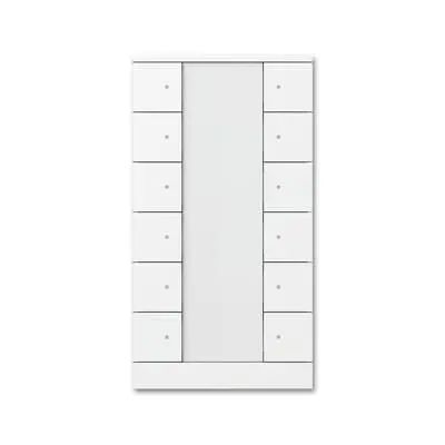 2CKA006330A0016 ABB: With integrated KNX bus coupler. With labelling field. Support of KNX functions through innovative colour concept (yellow=lighting, blue=blind, orange=RTC, magenta=scene and white=neutral/no function assigned) or standard illumination red/green. Push switch function: switching / dimming / blind / sending values / scenes etc. With integrated temperature sensor. Number of bus subscribers: 1