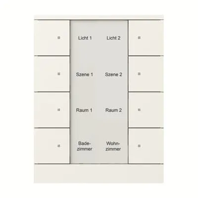 2CKA006330A0069 ABB: With integrated KNX bus coupler. With labelling field. Support of KNX functions through innovative colour concept (yellow=lighting, blue=blind, orange=RTC, magenta=scene and white=neutral/no function assigned) or standard illumination red/green. Push switch function: switching / dimming / blind / sending values / scenes etc. With integrated temperature sensor. Number of bus subscribers: 1