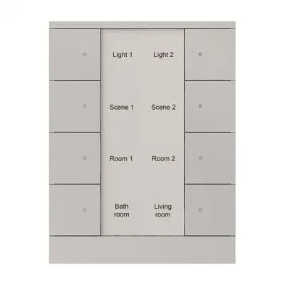 2CKA006330A0074 ABB: With integrated KNX bus coupler. With labelling field. Support of KNX functions through innovative colour concept (yellow=lighting, blue=blind, orange=RTC, magenta=scene and white=neutral/no function assigned) or standard illumination red/green. Push switch function: switching / dimming / blind / sending values / scenes etc. With integrated temperature sensor. Number of bus subscribers: 1