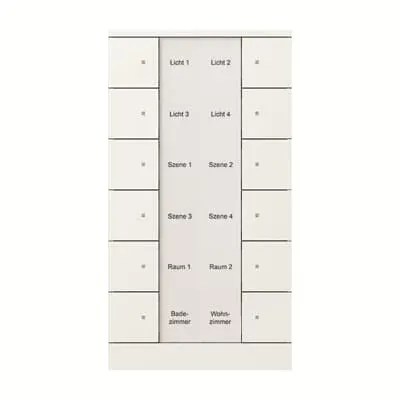 2CKA006330A0075 ABB: With integrated KNX bus coupler. With labelling field. Support of KNX functions through innovative colour concept (yellow=lighting, blue=blind, orange=RTC, magenta=scene and white=neutral/no function assigned) or standard illumination red/green. Push switch function: switching / dimming / blind / sending values / scenes etc. With integrated temperature sensor. Number of bus subscribers: 1