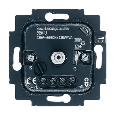 2CKA006590A0170 ABB: The control is effected by a Busch-Universal master dimmer 6593 U or Busch-Universal rotary dimmer 6591U-101 For incandescent lamps, 230 V tungsten halogen lamps and low-voltage halogen lamps with conventional transformers or electronic transformers. Can only be installed in conjunction with a cover plate 2114-xxx and 6541-xxx. Without cover plate.