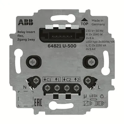 Relay insert 230 V enables compact, reliable switching for lighting and ventilation in two-gang installations. Engineers often struggle with crowded enclosures, wiring complexity, and mismatched accessories during retrofit projects. CE conformity, RoHS compliance, and REACH declarations support European market access and sustainable design. This module integrates easily with 2-gang faceplates and supports various control elements, including flexTronics and free@home ecosystems, delivering streamlined installation, reduced field wiring, and predictable performance for maintenance teams and specifiers alike.