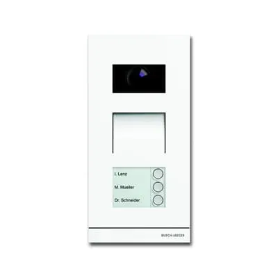 2CKA008300A0014 ABB: Video camera with automatic day/night switchover and infrared LEDs to illuminate the night shots. Hands-free device and key modules are backlit. Stamped labelling foil is enclosed. Mounting tool is enclosed. For flush-mounted installation with 41383F-H-03 / 41383F-B-03. For surface-mounted installation with 41383S-B-03 / 41383S-H-03. Vertical/horizontal detection angle: 86°/67° Setting angle horizontal/vertical: +/-15°, mechanically adjustable Consumer units: 8