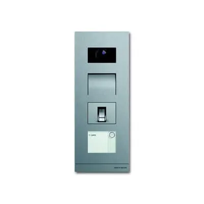2CKA008300A0419 ABB: Front plate made of 3 mm stainless steel. Video camera with automatic day/night switchover and infrared LEDs to illuminate the night shots. Communication unit and key module are backlit. Stamped labelling foil is enclosed. Mounting tool is enclosed. For flush-mounted installation with 41384F-B-03 / 41384F-H-03. For surface-mounted installation with 41384S-B-03 / 41384S-H-03. Setting angle horizontal/vertical: +/-15°, mechanically adjustable Vertical/horizontal detection angle: 86°/67° Enables the opening of the door using a fingerprint scanner. 64 users can be taught in. Programming directly on the module or using a web browser (requires IP gateway 83342). Consumer units: 10