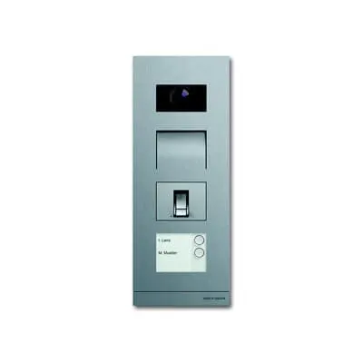 2CKA008300A0420 ABB: Front plate made of 3 mm stainless steel. Video camera with automatic day/night switchover and infrared LEDs to illuminate the night shots. Communication unit and key module are backlit. Stamped labelling foil is enclosed. Mounting tool is enclosed. For flush-mounted installation with 41384F-B-03 / 41384F-H-03. For surface-mounted installation with 41384S-B-03 / 41384S-H-03. Vertical/horizontal detection angle: 86°/67° Setting angle horizontal/vertical: +/-15°, mechanically adjustable Enables the opening of the door using a fingerprint scanner. 64 users can be taught in. Programming directly on the module or using a web browser (requires IP gateway 83342). Consumer units: 10