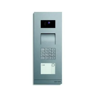 2CKA008300A0422 ABB: Front plate made of 3 mm stainless steel. Video camera with automatic day/night switchover and infrared LEDs to illuminate the night shots. Communication unit and key module are backlit. Stamped labelling foil is enclosed. Mounting tool is enclosed. For flush-mounted installation with 41384F-B-03 / 41384F-H-03. For surface-mounted installation with 41384S-B-03 / 41384S-H-03. Vertical/horizontal detection angle: 86°/67° Setting angle horizontal/vertical: +/-15°, mechanically adjustable Enables the opening of the door using a numerical code. 256 users can be taught in. The keypad can also be used for the direct selection of the ABB-Welcome indoor stations. Programming directly on the module or using a web browser (requires IP gateway 83342). Consumer units: 10
