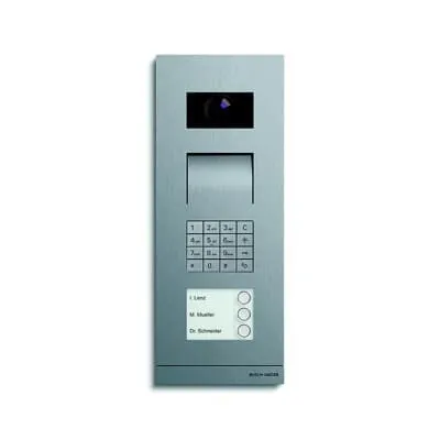2CKA008300A0424 ABB: Front plate made of 3 mm stainless steel. Video camera with automatic day/night switchover and infrared LEDs to illuminate the night shots. Communication unit and key module are backlit. Stamped labelling foil is enclosed. Mounting tool is enclosed. For flush-mounted installation with 41384F-B-03 / 41384F-H-03. For surface-mounted installation with 41384S-B-03 / 41384S-H-03. Vertical/horizontal detection angle: 86°/67° Setting angle horizontal/vertical: +/-15°, mechanically adjustable Enables the opening of the door using a numerical code. 256 users can be taught in. The keypad can also be used for the direct selection of the ABB-Welcome indoor stations. Programming directly on the module or using a web browser (requires IP gateway 83342). Consumer units: 10