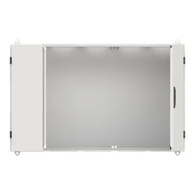 2CPX010211R9999 ABB: Wall-mounting cabinet, series TwinLine, empty cabinet, Expansion option: Lateral and bottom, for the internal use, with Door, class of protection II (double insulated), degree of protection IP55, applicable standards: EN 61439-1, EN 61439-2, EN 61439-3, Impact strength IK08, Powder-coated, in RAL 7035, enclosure out of sheet steel, double door, door out of sheet steel, with Standard locking mechanism double bit, door opening angle 180 degree, door hinge right and left, rear wall out of sheet steel, cable entry on top via flange opening pre-cut, on bottom via flange opening pre-punched, on side via flange opening pre-punched, dimensions in mm (H x W x D): 800 x 1300 x 350, Grid unit 5 GU, Overall height 1, panel width 5, Space units 300, pre-assembled for installation of metering-, modules, Combi-Sets, CombiLine-Modul or mounting plate on EDF-/WR-mounting frame
