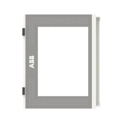 2CPX010874R9999 ABB: Left door with viewing window, field width 2, overall height 0 (4 RE), powder-coated, color: RAL 7035, door with rod lock and 3 mm double-bit standard lock, suitable for TwinLine-TW/L/G404 wall cabinets.