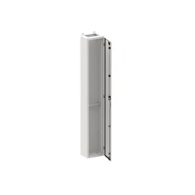 2CPX010948R9999 ABB: Floor-standing cabinet, series TwinLine, empty cabinet, for the internal use, with Door, class of protection I (earthed), degree of protection IP44, applicable standards: EN 61439-1, Impact strength IK08, Powder-coated, in RAL 7035, enclosure out of sheet steel, single-leaf door, door out of sheet steel, with Standard locking mechanism double bit, door opening angle 180 degree, door hinge right or left, rear wall out of sheet steel, cable entry on top via flange opening pre-cut, on bottom via flange opening pre-punched, dimensions in mm (H x W x D): 1850 x 300 x 225, Grid unit 12 GU, Overall height 8, panel width 1, Space units 144, pre-assembled for installation of modules and CombiLine Modules