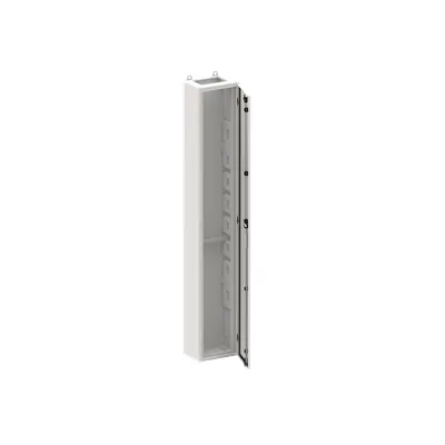 2CPX010949R9999 ABB: Floor-standing cabinet, series TwinLine, empty cabinet, for the internal use, with Door, class of protection II (double insulated), degree of protection IP44, applicable standards: EN 61439-1, Impact strength IK08, Powder-coated, in RAL 7035, enclosure out of sheet steel, single-leaf door, door out of sheet steel, with Standard locking mechanism double bit, door opening angle 180 degree, door hinge right or left, rear wall out of sheet steel, cable entry on top via flange opening pre-cut, on bottom via flange opening pre-punched, dimensions in mm (H x W x D): 1850 x 300 x 225, Grid unit 12 GU, Overall height 8, panel width 1, Space units 144, pre-assembled for installation of modules and CombiLine Modules
