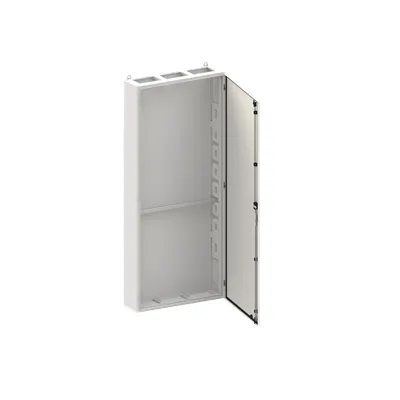 2CPX010953R9999 ABB: Floor-standing cabinet, series TwinLine, empty cabinet, for the internal use, with Door, class of protection II (double insulated), degree of protection IP44, applicable standards: EN 61439-1, Impact strength IK08, Powder-coated, in RAL 7035, enclosure out of sheet steel, single-leaf door, door out of sheet steel, with Standard locking mechanism double bit, door opening angle 180 degree, door hinge right or left, rear wall out of sheet steel, cable entry on top via flange opening pre-cut, on bottom via flange opening pre-punched, dimensions in mm (H x W x D): 1850 x 800 x 225, Grid unit 12 GU, Overall height 8, panel width 3, Space units 432, pre-assembled for installation of modules and CombiLine Modules