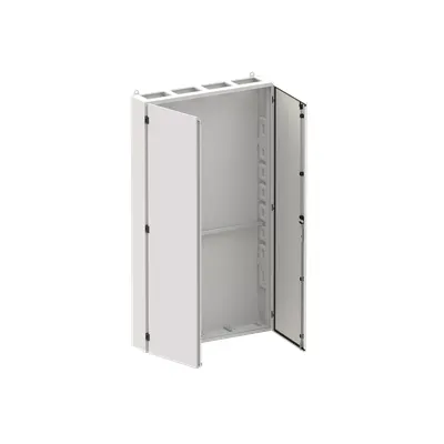 2CPX010955R9999 ABB: Floor-standing cabinet, series TwinLine, empty cabinet, for the internal use, with Door, class of protection II (double insulated), degree of protection IP44, applicable standards: EN 61439-1, Impact strength IK08, Powder-coated, in RAL 7035, enclosure out of sheet steel, double door, door out of sheet steel, with Standard locking mechanism double bit, door opening angle 180 degree, door hinge right or left, rear wall out of sheet steel, cable entry on top via flange opening pre-cut, on bottom via flange opening pre-punched, dimensions in mm (H x W x D): 1850 x 1050 x 225, Grid unit 12 GU, Overall height 8, panel width 4, Space units 576, pre-assembled for installation of modules and CombiLine Modules