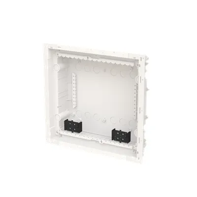 2CPX031113R9999 ABB: The wall box with wall brackets, suitable for UK61..., is made out of a twist-resistant, break-resistant, low-flammable and low-halogen plastic. It offers large wiring space. The integrated cable-enty slider and strain relief comb is included in the wall box for professional internal wiring. Additional cable entry with perforations lateral and on the rear wall,of the wall box, with removable cable entry slider for one-hand operation and integrated t-ribs for terminals installation