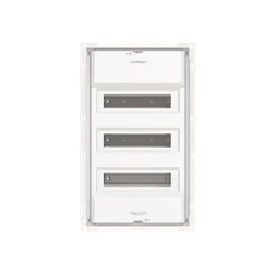 2CPX031376R9999 ABB: Consumer unit, series UK600, Expansion option: Lateral and bottom, for the internal use, without closed cover without door, class of protection II (double insulated), degree of protection IP30, applicable standards: EN 60670-24, Impact strength IK07, Rated operational voltage 400V AC 50/60 Hz, rated current 63 A, Glow wire resistance 850°C, in RAL 9016, enclosure out of thermoplast, without frame and without door, cable entry on top via cable entry slide part is pre-punched, on bottom via cable entry slide part is pre-punched, on side via pre-punched, rear wall pre-punched, dimensions in mm (H x W x D): 597 x 362 x 97, Space units 36, Row distance in mm: 125, covers out of Plastic, 90 degree press and turn closure, with N/PE Quick-terminal, cable fastening rail integrated, assembled with device carrier, device support removable