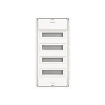 2CPX031377R9999 ABB: Consumer unit, series UK600, Expansion option: Lateral and bottom, for the internal use, without closed cover without door, class of protection II (double insulated), degree of protection IP30, applicable standards: EN 60670-24, Impact strength IK07, Rated operational voltage 400V AC 50/60 Hz, rated current 63 A, Glow wire resistance 850°C, in RAL 9016, enclosure out of thermoplast, without frame and without door, door opening angle 120 degree, cable entry on top via cable entry slide part is pre-punched, on bottom via cable entry slide part is pre-punched, on side via pre-punched, rear wall pre-punched, dimensions in mm (H x W x D): 722 x 362 x 97, Space units 48, Row distance in mm: 125, covers out of Plastic, 90 degree press and turn closure, with N/PE Quick-terminal, cable fastening rail integrated, assembled with device carrier, device support removable
