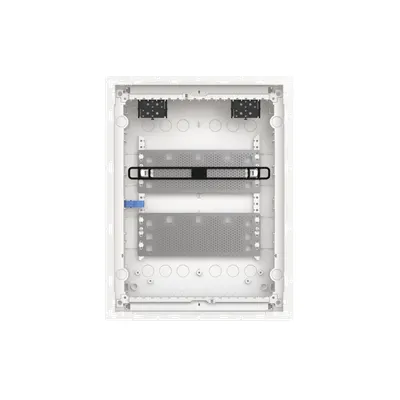 2CPX031394R9999 ABB: Multimedia unit, series UK600, Expansion option: Lateral and bottom, for the internal use, without closed cover without door, class of protection II (double insulated), degree of protection IP30, applicable standards: EN 60670-24, Impact strength IK07, Rated operational voltage 400V AC 50/60 Hz, rated current 63 A, Glow wire resistance 850°C, in RAL 9016, enclosure out of thermoplast, without frame and without door, cable entry on top via cable entry slide part is pre-punched, on bottom via cable entry slide part is pre-punched, on side via pre-punched, rear wall pre-punched, dimensions in mm (H x W x D): 472 x 362 x 97, Space units 24, cable fastening rail integrated, assembled with perforated sheet steel mounting plate and DIN rail