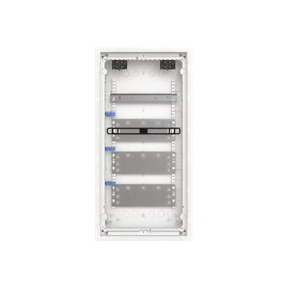 2CPX031396R9999 ABB: Multimedia unit, series UK600, Expansion option: Lateral and bottom, for the internal use, without closed cover without door, class of protection II (double insulated), degree of protection IP30, applicable standards: EN 60670-24, Impact strength IK07, Rated operational voltage 400V AC 50/60 Hz, rated current 63 A, Glow wire resistance 850°C, in RAL 9016, enclosure out of thermoplast, without frame and without door, cable entry on top via cable entry slide part is pre-punched, on bottom via cable entry slide part is pre-punched, on side via pre-punched, rear wall pre-punched, dimensions in mm (H x W x D): 722 x 362 x 97, Space units 48, cable fastening rail integrated, assembled with perforated sheet steel mounting plate and DIN rail