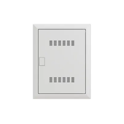 2CPX031454R9999 ABB: Multimedia unit, series UK600, Expansion option: Lateral and bottom, for the internal use, with closed doorframe and door, class of protection II (double insulated), degree of protection IP30, applicable standards: EN 60670-24, Impact strength IK07, Rated operational voltage 400V AC 50/60 Hz, rated current 63 A, Glow wire resistance 850°C, Powder-coated, in RAL 9016, enclosure out of thermoplast, with frame and ventilated door , door out of sheet steel, in RAL 9016, with TIP-in closure, door opening angle 120 degree, door hinge right or left, cable entry on top via cable entry slide part is pre-punched, on bottom via cable entry slide part is pre-punched, on side via pre-punched, rear wall pre-punched, dimensions in mm (H x W x D): 497 x 384 x 97, Shutter frame dimensions in mm (H x W x D): 497 x 384 x 9, Space units 24, cable fastening rail integrated, assembled with perforated sheet steel mounting plate and DIN rail