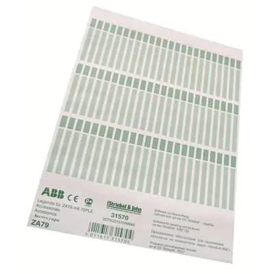 2CPX031570R9999 ABB: Labelling system, legend for ZA78, for 72 devices (space units), self-adhesive, for distributor fields, combination kits or CombiLine modules. Simple printing using the labelling module of the StriePlan planning software.