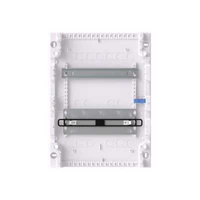2CPX031814R9999 ABB: Multimedia unit, partly assembled, for the internal use, without door, class of protection II (double insulated), degree of protection IP00, applicable standards: EN 60670-24, Impact strength IK07, Rated operational voltage 400V AC 50/60 Hz, Glow wire resistance 750°C, Untreated, in RAL 9016, enclosure out of thermoplast, without door, in RAL 9016, door opening angle 120 degree, door hinge right or left, cable entry on top via pre-punched, on bottom via pre-punched, on side via pre-punched, rear wall pre-punched, dimensions in mm (H x W x D): 453 x 339 x 99, Space units 24, Row distance in mm: 125, covers out of Plastic, Quick sealable connection, without N/PE without terminal, cable fastening rail integrated, With Mulit Media board, device support removable