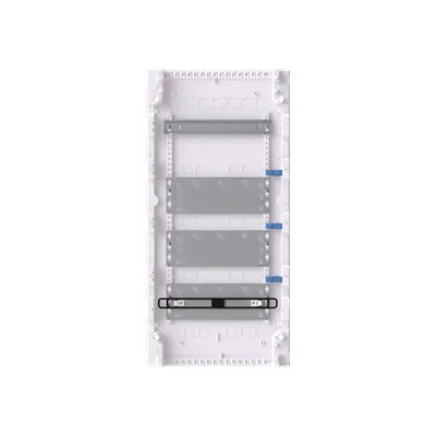 2CPX031816R9999 ABB: Multimedia unit, partly assembled, for the internal use, without door, class of protection II (double insulated), degree of protection IP00, applicable standards: EN 60670-24, Impact strength IK07, Rated operational voltage 400V AC 50/60 Hz, Glow wire resistance 750°C, Untreated, in RAL 9016, enclosure out of thermoplast, without door, in RAL 9016, door opening angle 120 degree, door hinge right or left, cable entry on top via pre-punched, on bottom via pre-punched, on side via pre-punched, rear wall pre-punched, dimensions in mm (H x W x D): 703 x 339 x 99, Space units 48, Row distance in mm: 125, covers out of Plastic, Quick sealable connection, without N/PE without terminal, cable fastening rail integrated, With Mulit Media board, device support removable