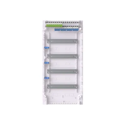 2CPX032566R9999 ABB: Consumer unit, partly assembled, for the internal use, without door, class of protection II (double insulated), degree of protection IP30, applicable standards: EN 60670-24, Impact strength IK07, Rated operational voltage 400V AC 50/60 Hz, rated current 63 A, Glow wire resistance 750°C, Untreated, in RAL 9016, enclosure out of thermoplast, without door, in RAL 9016, door opening angle 120 degree, door hinge right or left, cable entry on top via pre-punched, on bottom via pre-punched, on side via pre-punched, rear wall pre-punched, dimensions in mm (H x W x D): 703 x 339 x 99, Space units 48, Row distance in mm: 125, covers out of Plastic, Quick sealable connection, with N/PE Quick-terminal, cable fastening rail integrated, Assembled with DIN-rail, device support removable