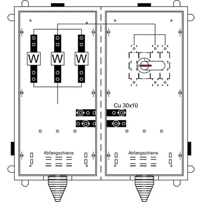 Mounting pads for current transformers are included with CT rails of 220x30x10 mm, and a Cu busbar 30x10 mm supports N+PE distribution. Plan for potential extra busbar requirements for metering transformers, and verify L1–L3 wiring capacity (120 qmm) to ensure safe, efficient assembly and future scalability.